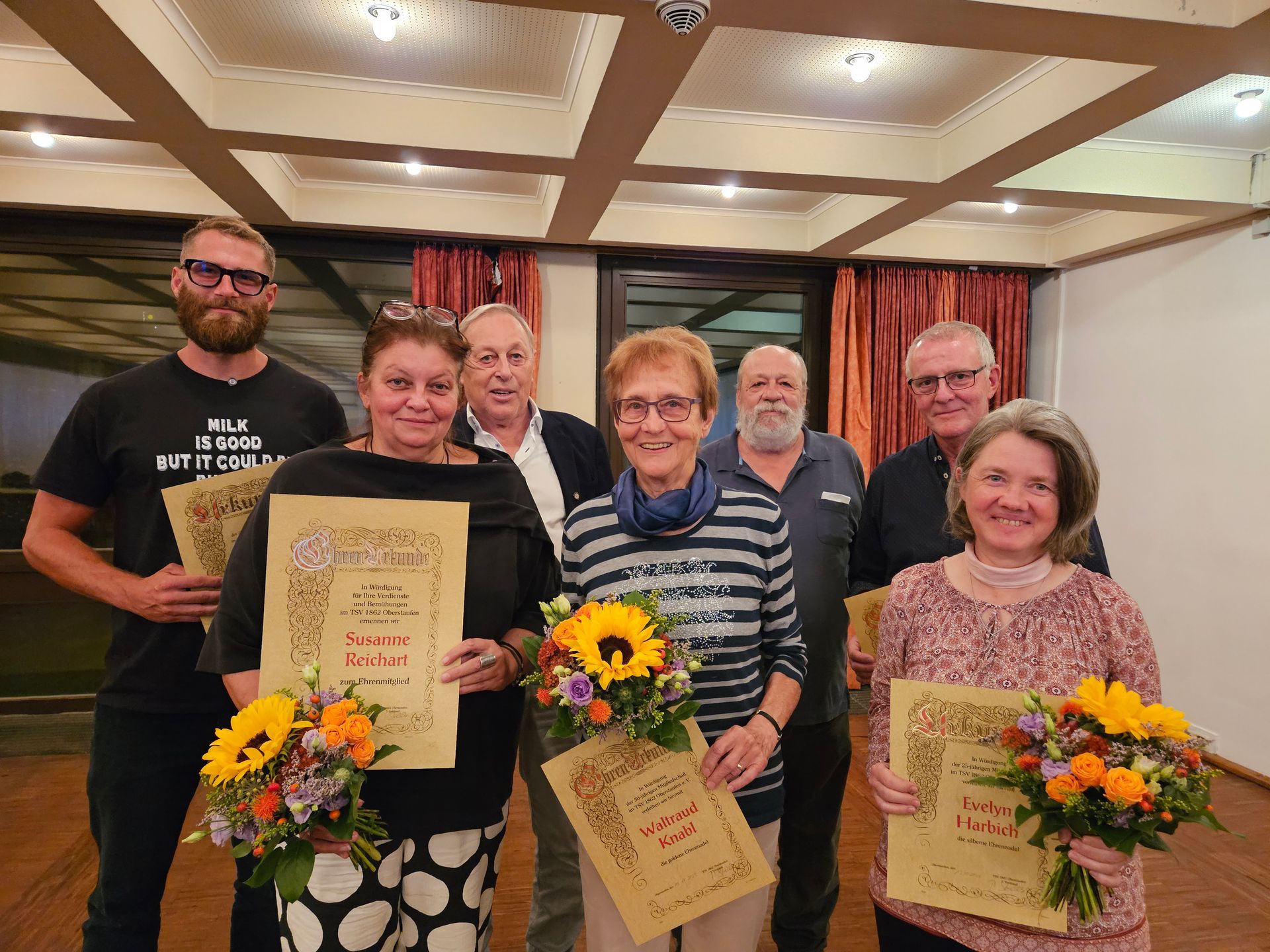 Für langjährige Treue zum Verein wurden zahlreiche Mitglieder ausgezeichnet – darunter waren Ehrungen für 25, 40, 50 und 60 Jahre Mitgliedschaft. Besonders hervorgehoben wurde zudem die Familie Giegerich, bei der gleich drei Mitglieder Jubiläen feierten.