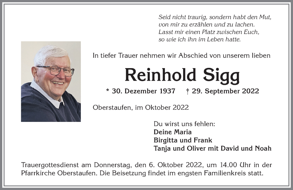 Nachruf - Ehrenmitglied Reinhold Sigg verstorben